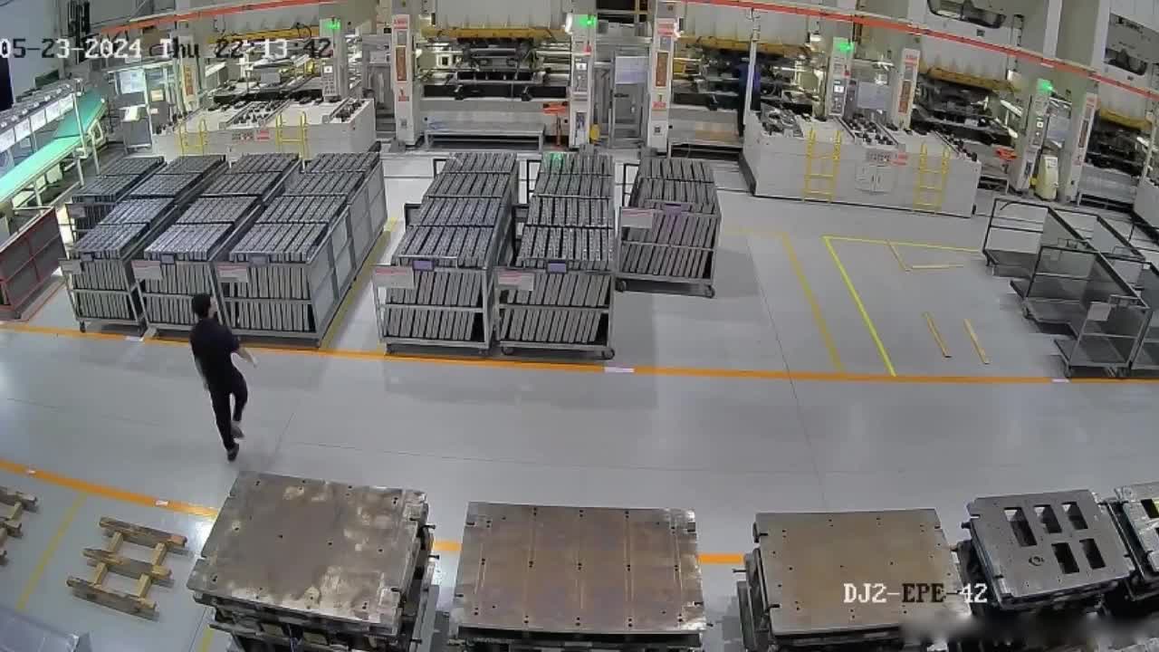 Worker forgets his hands in a hydraulic machine.