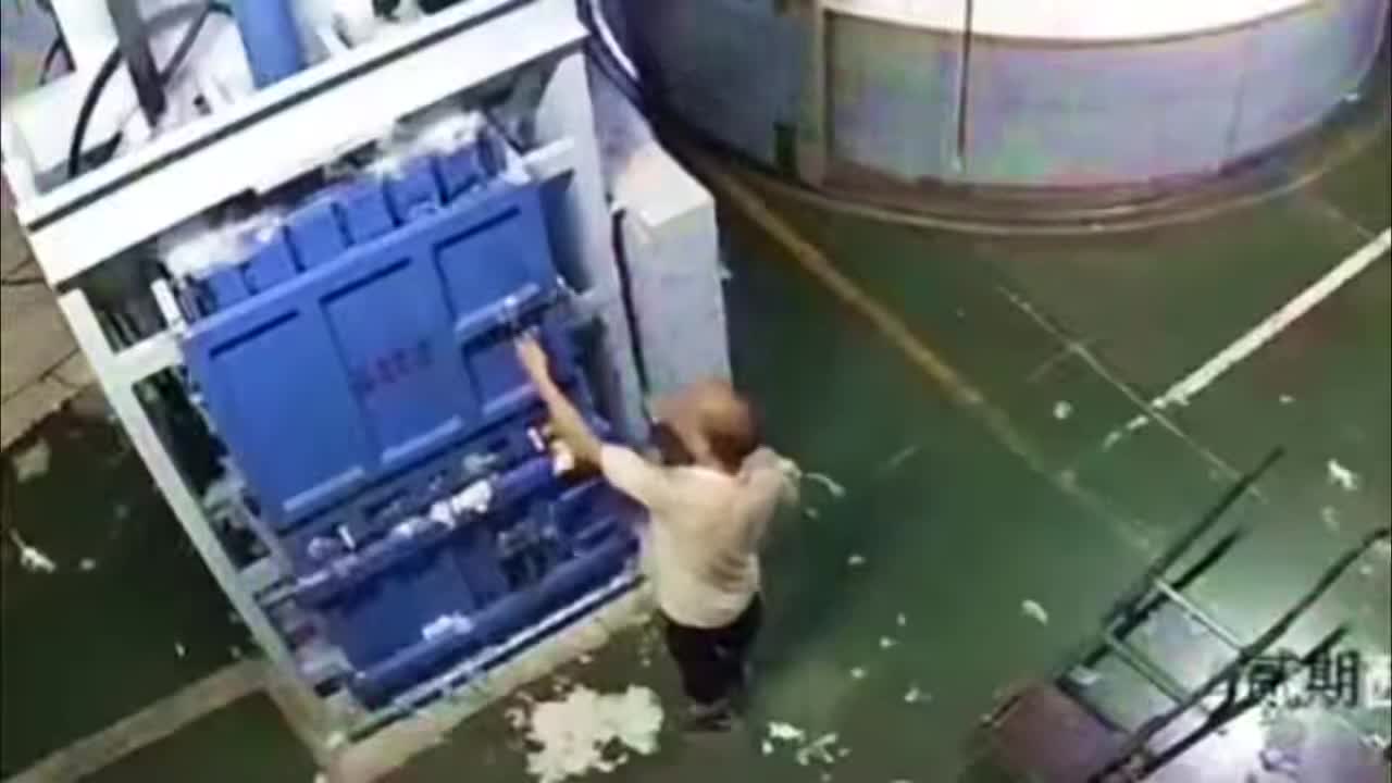 Guy climbs into machine and has his legs slowly crushed